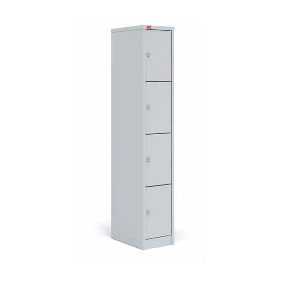 Каждое отделение комплектуется врезным замком, что позволяет обеспечить удобный доступ и сохранить содержимое в безопасности. Корпус выполнен из металла и покрыт полимерной порошковой краской светло-серого цвета RAL 7035, устойчивой к повседневной эксплуатации. При необходимости возможно изготовление в другом оттенке по палитре RAL.